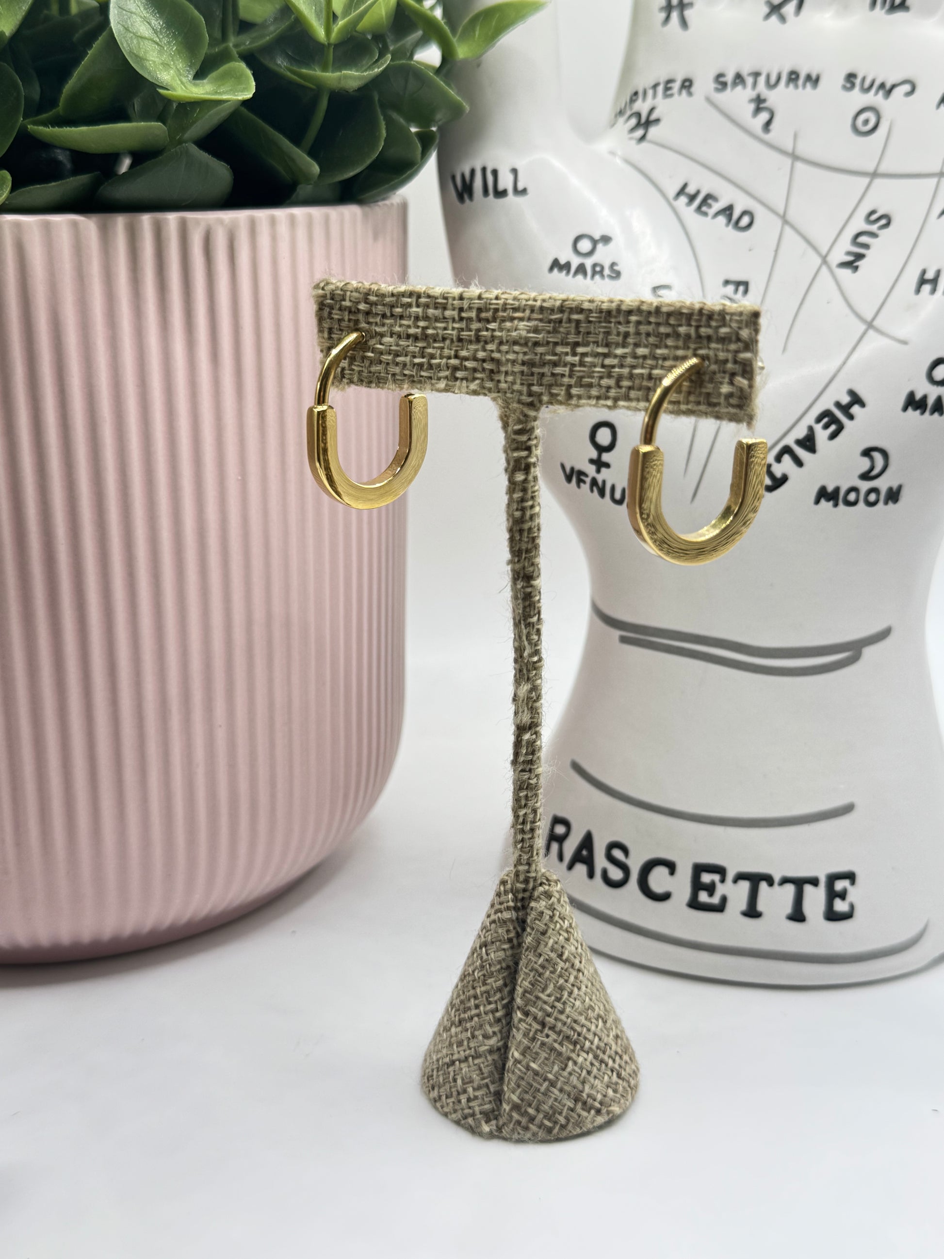Pendientes sencillos de aro de acero inoxidable chapados en oro auténtico de 18 quilates. Resistentes al agua, minimalistas y perfectos para lucirlos a diario sin esfuerzo.
