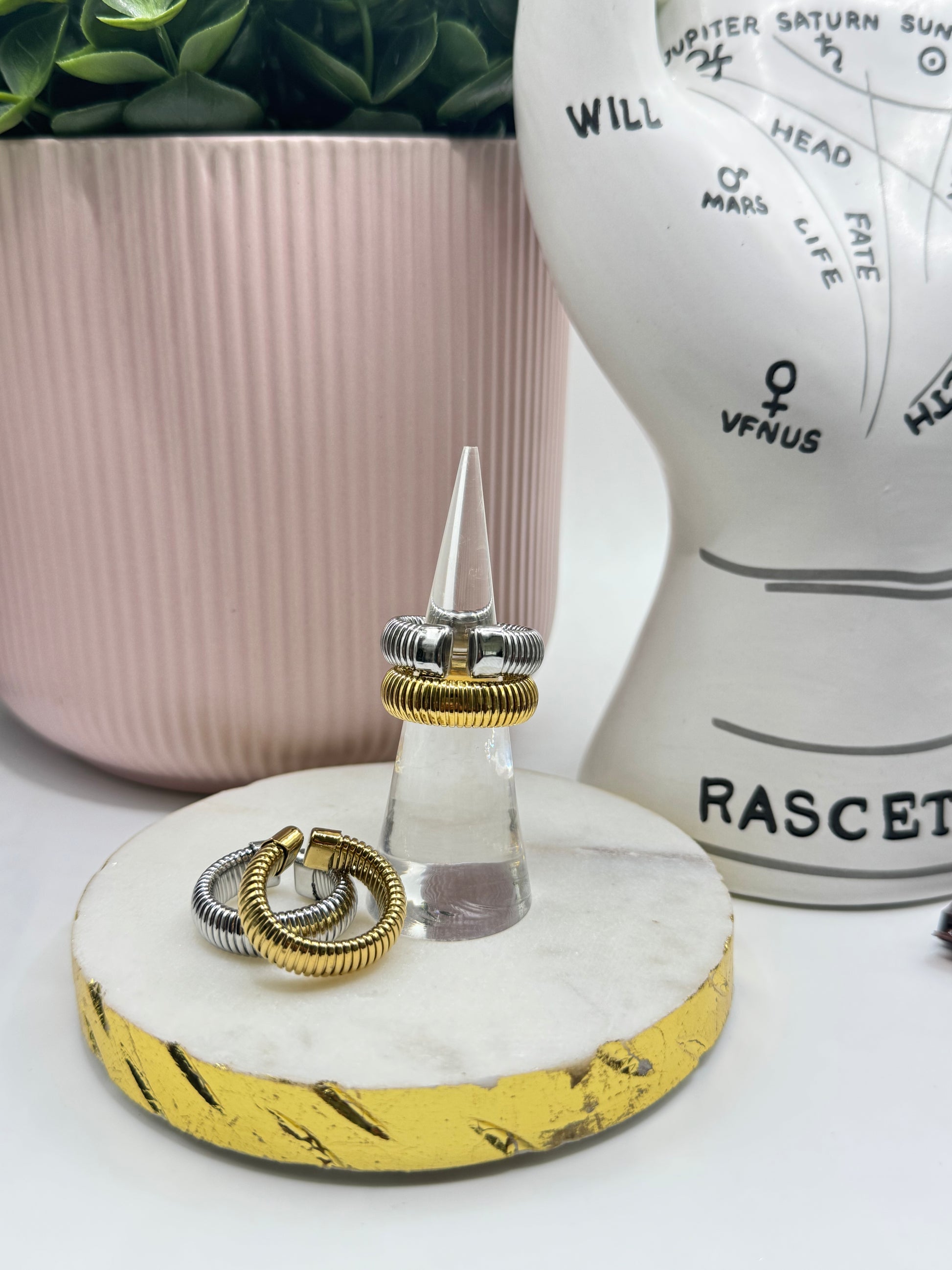 Anillo abierto minimalista elaborado en acero inoxidable con baño de oro de 18K.