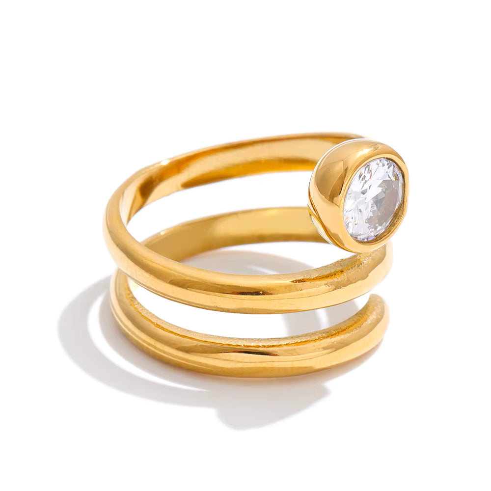 Elegant Promise Love ring crafted from stainless steel with 18k gold plating. Features a stunning statement zirconia stone that captures the light beautifully. A romantic and meaningful piece perfect for symbolizing commitment and love.